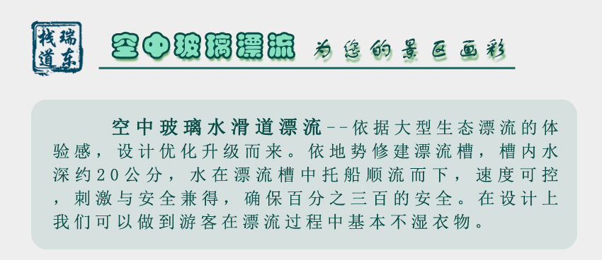 我公司為國內(nèi)首條玻璃滑道設(shè)計施工單位,擁有十余年經(jīng)驗,專業(yè)設(shè)計承建、投資運(yùn)營景區(qū)花崗巖滑道、玻璃滑道、水滑道漂流、大型生態(tài)漂流、玻璃吊橋、棧道等項目。聯(lián)系電話:18032092866(微信號同電話)